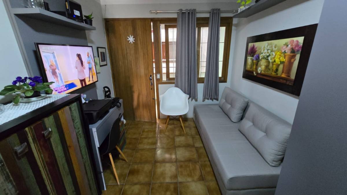 Apartamento no Centro de Capão da Canoa 01 Dormitório Banheiro social Cozinha Americana Sacada de Frente Mobiliado Edifício com elevador, churrasqueira, sistema de segurança