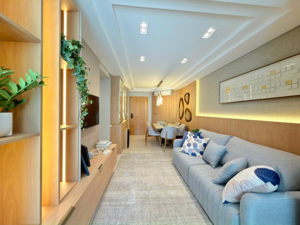 APARTAMENTO À VENDA SACADA DE FRENTE 2 Dormitórios sendo 1 Suíte Banho social Sacada Frente Sol da manhã Mobiliado & Decorado 116 M² 01 Box Edifício 2 Elevadores Salão de festas Sala de Jogos Piscina Zelador permanente