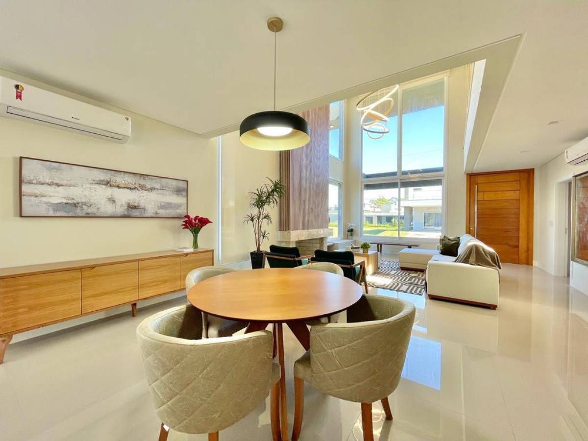 Sobrado alto padrão, mobiliado e decorado, a poucos passos da Lagoa, no Condomínio Velas da Marina em Capão da Canoa! Composta por 4 suítes, lavabo, amplo living 3 ambientes com pé direito duplo, lareira, cozinha americana, espaço gourmet com churrasqueira, área de serviços separada e abrigo para até 2 veículos. São aproximadamente 350m² de área privativa, mobiliada e decorada, alto padrão de acabamentos, piso porcelanato, climatizada, lindo paisagismo, piscina e deck de madeira, pronto para veranear/morar! Condomínio de luxo as margens da Lagoa dos Quadros, com infraestrutura de lazer completa, toda segurança, conforto e comodidade para você e sua família desfrutarem momentos inesquecíveis junto a natureza exuberante da Lagoa e pertinho da praia em Capão da Canoa! Agende sua visita agora mesmo!