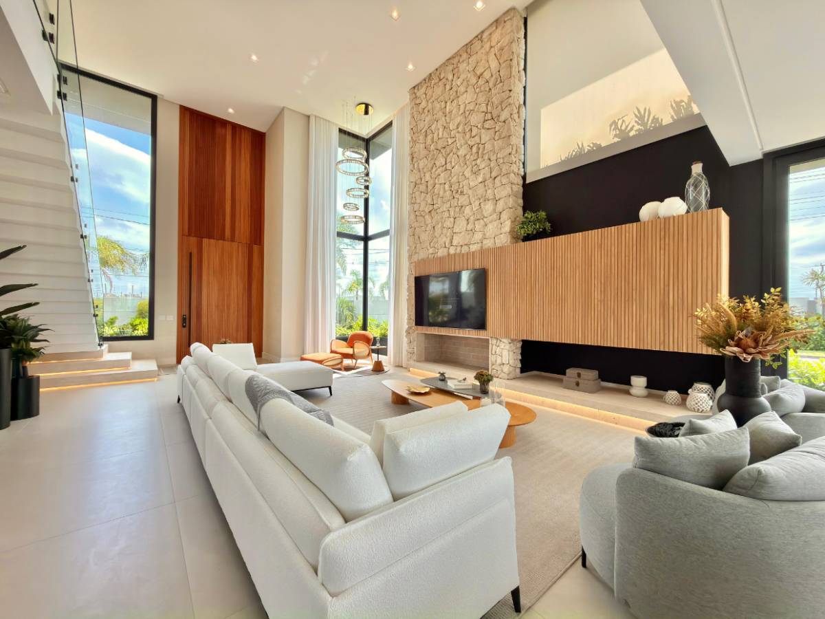 CONDOMÍNIO SENSE MANSÃO À VENDA! 475 M² de área construída Lote de 537 M² de esquina São 5 suítes, sendo uma térrea Uma suíte master com um closet espetacular Área de serviço com dependência Casa totalmente automatizada por alexa Piscina aquecida com hidro, frente ao lago Um diferencial em pedras, utilizada a modelo branca na decoração, uma pedra raramente vista na composição de ambientes Escada toda revestida em Travertino Romano, assim como a bancada do lavabo Mesa de sinuca Casa com ótima iluminação natural