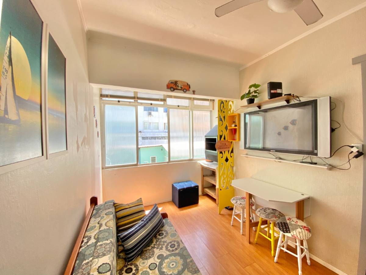 KITNET À VENDA Edifício Acapulco 215-F JK Mobiliado Orientação solar: Norte Churrasqueira Vista Oceano Apenas 100 metros do mar Área total do apartamento: - 22m2